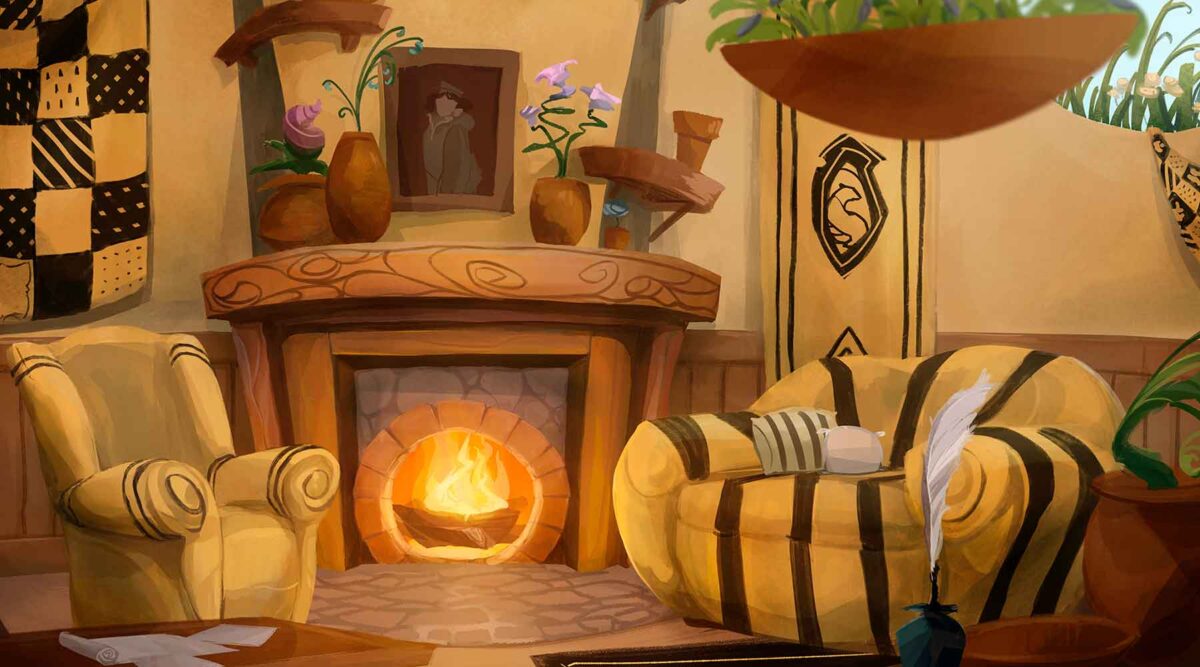 As cores da casa são representadas por todo o ambiente, com tapeçarias e vestes das camas em amarelo e preto. Um retrato da fundadora também se faz presente, cumprimentando os alunos. Além disso, um detalhe muito legal são as janelas circulares que ficam na altura do gramado do castelo, perfeitamente pensadas para receber a iluminação solar ao longo de todo o dia. De vez em quando, dá para ver os pés dos alunos nos jardins, em meio ao grama e aos dentes-de-leão.